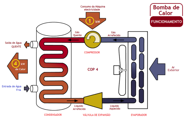 No modo de aquecimento, as bombas de calor, são capazes de extrair calor latente do ar exterior (mesmo quando a temperatura exterior é tão baixa quanto -20°C) transferindo-o para o interior, para aquecer os espaços através do equipamento interior instalado (radiadores, ventilo-convetores, pavimento radiante e águas quentes sanitárias). No modo de arrefecimento as bombas de calor, funcionam transferindo o calor de um espaço interior para o ar exterior, arrefecendo a área interior.