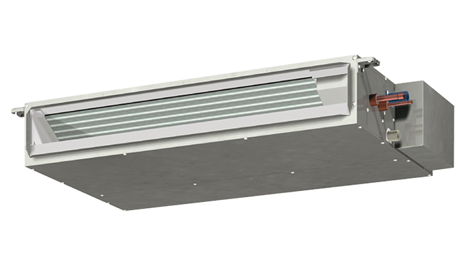 Com apenas 280mm de altura, o que permite a sua instalação em edifícios com restrições de espaço, esta cassete de 2 vias é líder no mercado da sua classe. Entre outras vantagens, inclui bomba de condensados com uma elevação até 60cm, insuflação horizontal e modo electrónico de desumidificação.