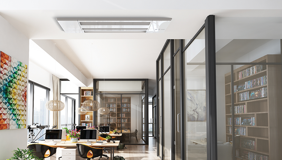 Permite a instalação em edifícios com restrições de construção (290 mm de altura); Possibilidade de orientação das alhetas, de forma a que a distribuição do ar de insuflação seja homogénea e tangencial ao tecto.